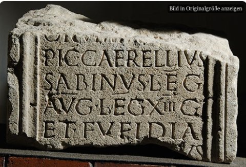 - [Minervae] / [Iovis consili]/orum [partici]/pi C(aius) Caerellius / Sabinus leg(atus) / Aug(usti) leg(ionis) XIII g(eminae) / et Fufidia / P[ollitta ei]us / [voto]