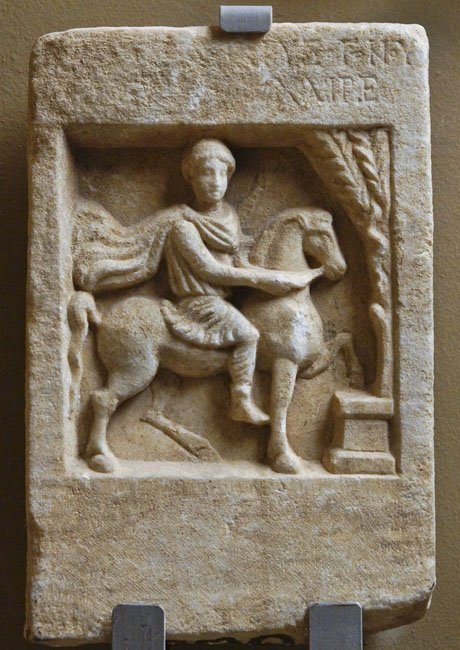 - Mythische Figur: Thrakischer Reiter mit Altar und Baum mit Schlange.