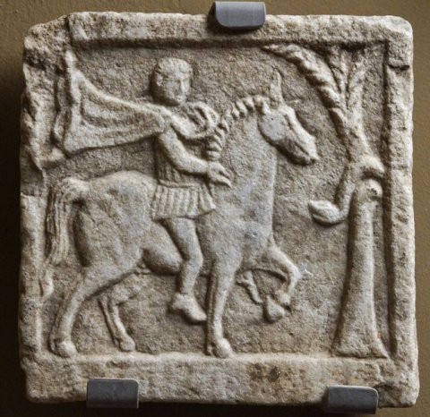 - Mythische Figur: Thrakischer Reiter mit Baum und Schlange.