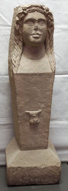 - Apollo-Kopf mit Schulterlocken und Lorbeerkranz, eckiger Hermenpfeiler mit Sockel.