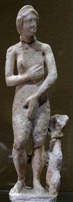 - Mythische Figur: Venus Pudica (Aphrodite) mit Diadem, neben dem linken Bein Delphin mit Erot.