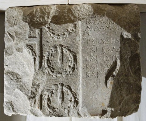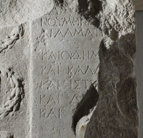 ὁ̣ δῆ̣μ̣[ος Ὀδησσιτῶν] / Νουμήνι[ον τοῦ δεῖνα] / ἀγάλματι̣ [ἐστεφάνωσε]. / καὶ ὁ δῆμ[ος Τομιτῶν] / καὶ Καλλ[ατιανῶν] / καὶ Ἰστρι[ανῶν] / καὶ Δι̣[ονυσοπολιτῶν] / καὶ [Μεσσαμβριανῶν].