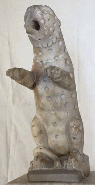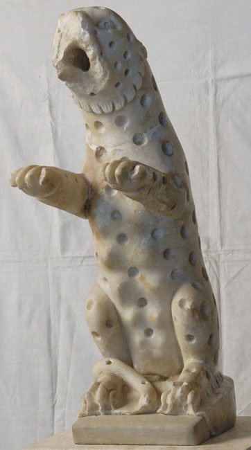 - auf den Hinterbeinen aufgerichtet sitzender Panther