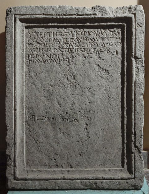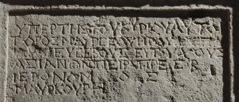 Ἀσιανῶν σπείρᾳ πρεσβ(—) / ἱερονόμος / Μ(ᾶρκος) Αὐρ(ήλιος) Κουρη<ς> //ΚΙΤϹΕΟΦΟΡΙϹϹΑΘΕΟΛ