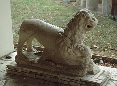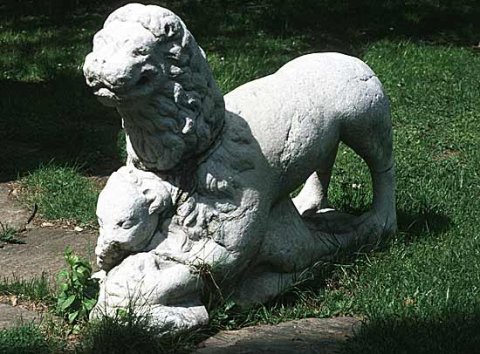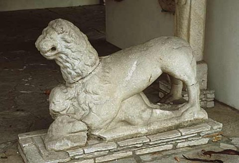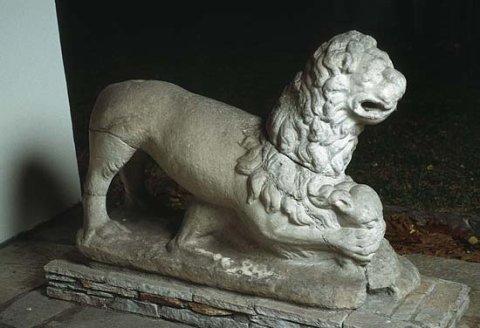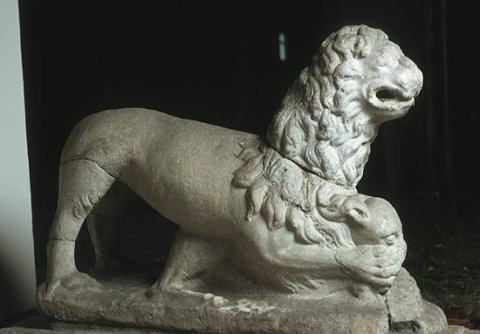 - Auf flacher Basis Löwe mit Kalb unter den Vorderpranken.