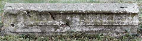 - Block mit Fascien und profiliert gerahmtem Fries mit einzeiliger Monumentalinschrift