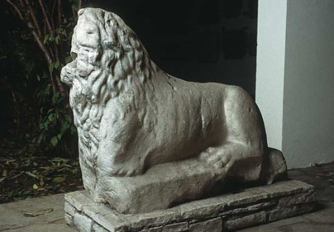 - auf flacher Basis liegender Löwe