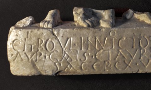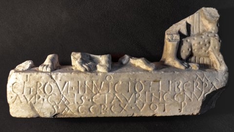 - I(ovi) O(ptimo) M(aximo) / e(t) H(e)rquli(!) Invicto et Liber(o) Pa[tri] / Aup(elius)(!) Gai(u)s et Aur(elius) Ingenu(u)[s] / sacer(dotes) ex vot(o) p(osuerunt)