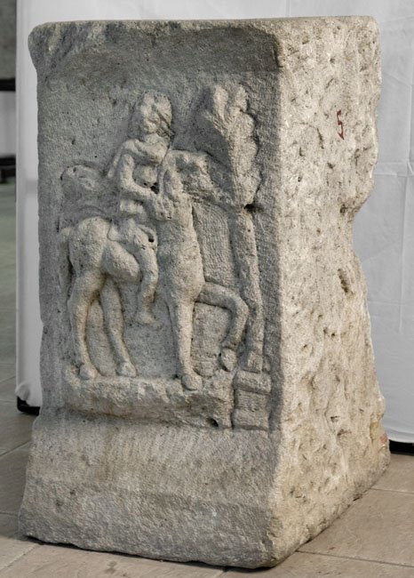 - Mythische Figur: auf beiden Nebenseiten Reiter mit Altar und Baum (Thrakischer Reiter ?).