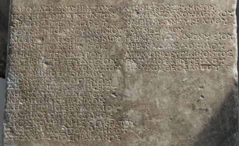 Ποσειδώνιος Γέροντος / Ἡραίων Ἀρτεμιδώρου / Νουμήνιος Νουμηνίου / Διοσκουρίδης Ἡρωνύμου / Δημήτριος Γέροντος / Μῆνις Ἀρτεμιδώρου / Ἀντικράτης Εὐδόξου / Τιμοκλῆς Ἀριστομάχου / Νουμήνιος Μονίμου / Διονύσιος Διογένου / Διονύσιος Δημητρίου / Μῆνις Ἀπολλοδώρου / Νουμήνιος Εἰρανίχου / Δημήτριος Ἑκαταίου / Γλαυκίας Στράτωνος / Διοσκουρίδης Σωκράτου / Παυσίμαχος Πολυφήμου / Ἀπολλόδωρος Ἡραίωνος // rechte Komumne: Μενίσκος Σκύμνου / Νουμήνιος Νουμηνίου / Χαιρήμων Εὐκράτου / τοῦ Θεοφίλου / Ἡφαιστίων Διονυσίου / Τριακάδας Δοκίμου / Ἀπολλώνιος Ὑγιαίνοντος / Ἑστιαῖος Ἀριστείδου / Ἡδύλος Θεοφανίου.