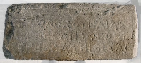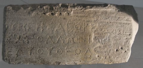 Ἱππολόχου παῖδες [τ]οῦ Ἡγησαγόρε[ω] / Ξενοκλῆς Θεόξεν[ο]ς Ἀπόλλωνι [Ἰητρῶι] / ἐπὶ ἱέρεω Ἡγησαγ[όρ]εω τοῦ Θεοδ[ότου].
