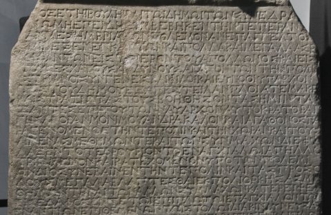 [ἔδ]οξε τῆι βουλῆ[ι] κ̣αὶ τῶι δήμωι· τῶν συνέδρω[ν] / [γ]νώμη· ἐπειδὴ σ̣υ̣μβέβηκεν τήν τε πέραν [χώ]/ρ̣αν Μεσημβρια[ν]ῶν πόλεμον ἀνεπάγγελτον / ἡ̣μῖν ἐξενεγκά̣ν̣των καὶ πολλὰ καὶ μεγάλα ἀσε/[β]ησάντων εἰς τὸ ἱερὸν τοῦ Ἀπόλλωνος καὶ εἰς / τοὺς ἐσχάτους κινδύνους ἀγαγόντων τὴν πόλι[ν],/ Ἰστριανοὶ συνγενεῖς καὶ φίλοι καὶ εὔνοοι ὑπάρχον/τες τοῦ δήμου ἐξαπέστειλαν πλοῖά τε μακρ[ὰ] / καὶ στρατιώτας τοὺς βοηθήσοντας ἡμῖν, τά/ξαντες ἐπὶ τούτων ναύαρχον αὐτοκράτορα Ἡ̣/γησαγόραν Μονίμου, ἄνδρα καλὸν καὶ ἀγαθόν, ὃς πα/ραγενόμενος τήν τε πόλιν καὶ τὴν χώραν καὶ τοὺς / λιμένας μεθ’ ἡμῶν τε καὶ τῶν συνμάχων {συμμάχων} διεφύ/λαξεν, τό τε φρούριον τὸ ἐν Ἀγχιάλωι ἀπηλλο/τριωμένον καὶ κατεχόμενον ὑπὸ τῶν πολεμί/ων, διὸ συνέβαινεν τήν τε πόλιν καὶ τὰς προσό/δους μεγάλα βλάπτεσθαι, ἐκπολιορκήσας μ[ε]/θ’ ἡμῶν τε καὶ τῶν ἄλλων συμμάχων κατέρειψε / εἰ[ς] ἔδαφος, ἔν τε τῶι ἐπίπλω<ι> τῶι ἐπ’ Ἀγχίαλον τῶν / ἐναντίων ἐπιθεμένων τῶιστόλωιδιακινδυνεύσα[ς] / πρὸς πλείονας τῶν τε πολεμίων ἐκράτησεν καὶ πλοῖ/ον αὔτανδρον ἔλαβε μεθ’ ἡμῶν τε καὶ τῶν ἄλλων / συμμάχων, ὁμο[ίω]ς δὲ καὶ ἐν ταῖς ἀποβάσεσιν παραβολώ/τερον ἑαυτὸν διδοὺς εἰς τοὺς ἀγῶνας καὶ ἐν τοῖς / λοιποῖς ἅπασιν φιλοκινδύνως ἀγωνιζόμενος ἐπὶ / προτερημάτων διὰ παντὸς ἐγείνετο καὶ τοὺς στρα/τιώτας ἑαυτοῦ προθύμους καὶ χρησίμους ἐν τῶ[ι] / πολέμωι διὰ παντὸς παρείχετο· ὅπως οὖν ὁ δῆμος ε[ὐ]/[χ]αριστῶν φαίνηται καὶ τειμῶν τοὺς ἀγαθοὺς τῶν ἀν/δρῶν, τύχηι ἀγα[θ]ῆι δεδόχθαι τῆι βουλῆι καὶ τῶι δή/μωι ἐπαινέσαι μὲν ἐπὶ τούτοις τὸν δῆμον τὸν Ἰστρι/ανῶν, φίλον ὄντα καὶ συγγενῆ καὶ σύμμαχον, καὶ ἐ/πὶ τῶι πένψαι ναύαρχον Ἡγησαγόραν Μονίμου καὶ ἀπο/καταστῆσαι τὰς ἐψηφισμένας Ἰστριανοῖς τιμάς· στ[ε]/φανῶσαι δὲ καὶ Ἡγησαγόραν Μονίμου χρυσῶι στεφάνω[ι] / ἐν τοῖς Διονυσίοις καὶ εἰκόνι χαλκῆι ἐν ὅπλοις ἐπ’ ἐμ/[β]όλου καὶ ἀναθεῖναι τὴν εἰκόνα εἰς τὸ ἱερὸν τοῦ Ἀπόλ/λωνος τοῦ Ἰατροῦ καὶ γράψαι τὸ ψήφισμα τὴν βά/[σ]ιν, [ἀ]ναγγεῖλαι δὲ τὰς τειμὰς καὶ ἐν Ἴστρωι ἐν τοῖς συν/[τελουμέν]οις ἀγῶσιν ἀ[ε]ὶ ποιουμένους τὴν ἀναγγε/[λίαν τοὺς ---