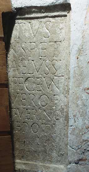 - [---]tus / [---]ns f(ilius) et / [---]a Elvissi / [---] fecerunt / [---] Vero f(ilio) / [---] et Verino / [---] nepoti