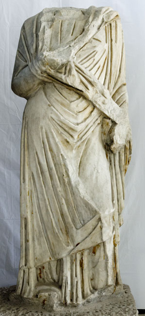 22054 Grabstatue einer Frau in Chiton und Mantel