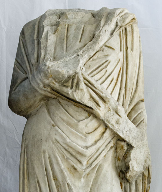 22054 Grabstatue einer Frau in Chiton und Mantel