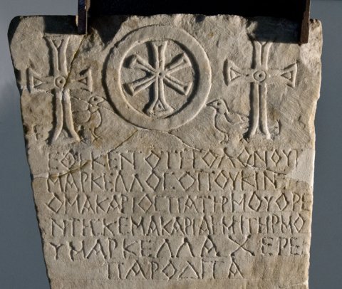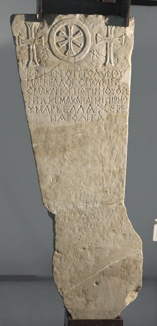 ἔθηκεν τὸ τήτολον τοῦτο / Μάρκελλος ὅπου κῖντε / ὁ μακάριος πατήρ μου Ὀρέ/ντης κὲ μακαρία ἡ μήτηρ μο/ῦ Μάρκελλα. χε̑ρε, / παροδῖτα.