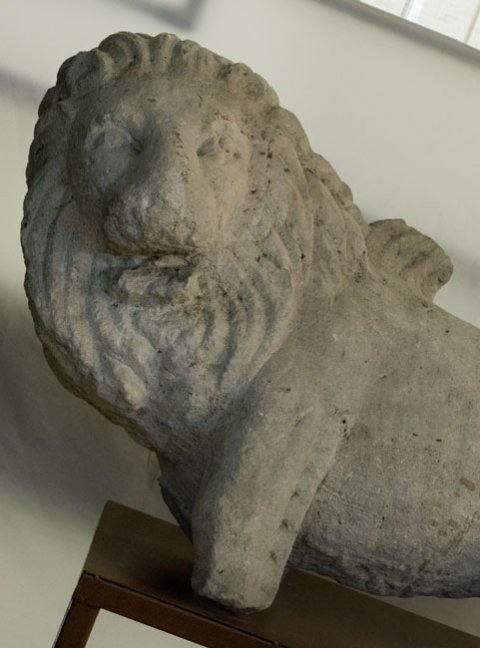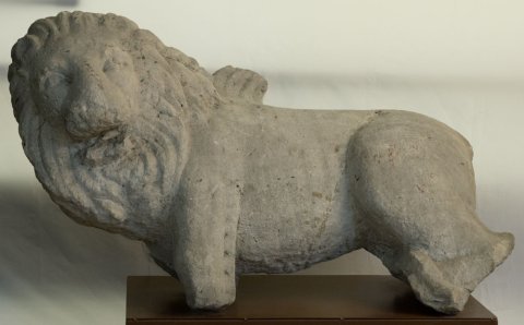 - Stehender Löwe mit zur rechten Schulter gedrehtem Kopf.