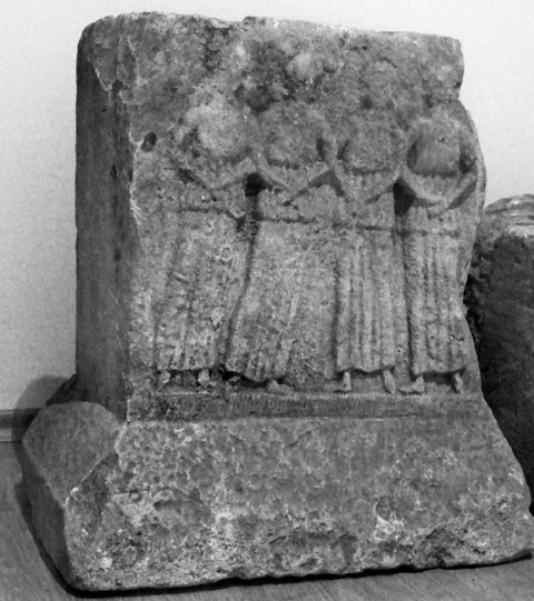 - Mythische Figuren: auf der Altarvorderseite vier frontal stehende Frauen im langen Chiton. Silvanae ?