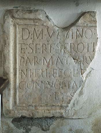 - D(is) M(anibus) Ursino T[--- f(ilio)] / et Sert(oriae) Seroti[ni fil(iae)] / par(entibus) Maturu[s Ursi]/ni fil(ius) fec(it) et [- -] / coniugi kar[issimae] / et s[ibi]