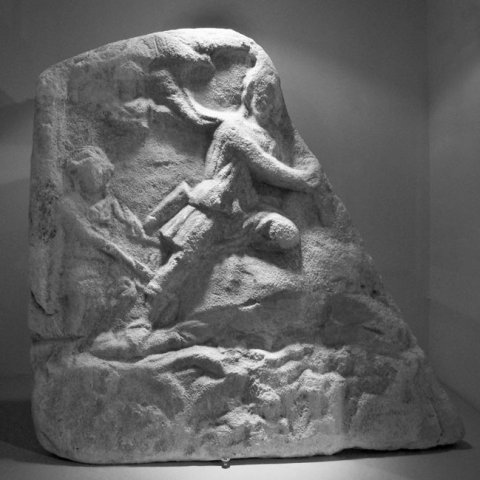 - Mythos (Mithras): Stiertötung (Tauroktonie) mit Cautopates und Sol-Büste