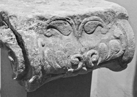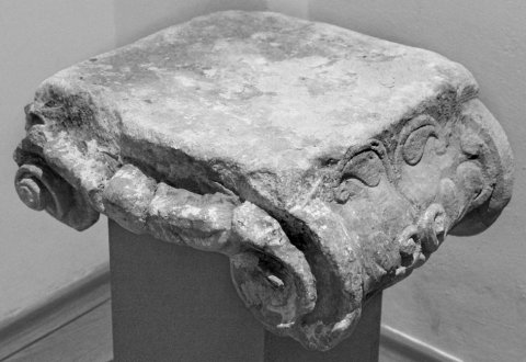 - Jonisches Kapitell, auf den Volutenaußenseiten Ranken.