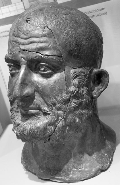 - Porträtkopf eines älteren Mannes mit kurzem Haar und gelocktem Vollbart