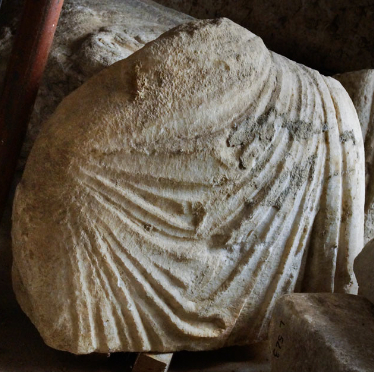 - 2 nicht anpassende Fragmente (a Schulterpartie, b Füße und Unterschenkel), Oberkörper vorn abgesplittert