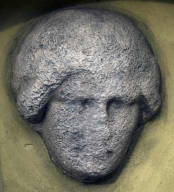 - Kopf einer einheimischen Frau mit Haube. Teil eines Grabreliefs.