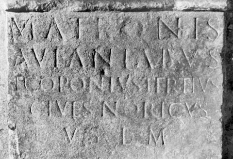 - Matronis / Aufaniabus / T(itus) Coponius Tertius / cives(!) Noricus / v(otum) s(olvit) l(ibens) m(erito)