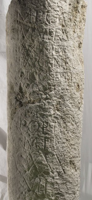 - Imp(erator) Caes(ar) / C(aius) Iulius Verus / Maximinus / P(ius) F(elix) Aug(ustus) p(ontifex) m(aximus) trib(unicia) / pot(estate) co(n)s(ul) des(ignatus) p(ater) p(atriae) / proco(n)s(ul) resti(tuit) / a Poet(ovione) / m(ilia) p(assuum) / CXXX/VII