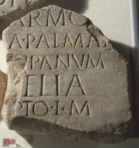 - ---](?) / [---]armo[---] / [---]a palmaI(?)[-](?) / [---]I(?)panum / [---]elia / [ex? voto? susce?]pto l(ibens) m(erito) / [---?