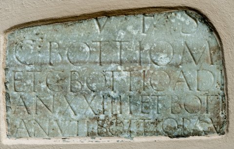 - ---] / v(ivus?) f(ecit?) sib[i et] / C(aio) Bottio Me[rcatori] / et C(aio) Bottio Adiu[tori] / an(norum) XXIIII et Botti[o ---] / an(norum) VII Bottio Paul[ino an(norum) ---]