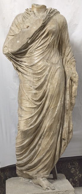 - Kopf, linke Hand u. rechter Fuß abgebr., rechter Unterarm tlw. abgeschlagen