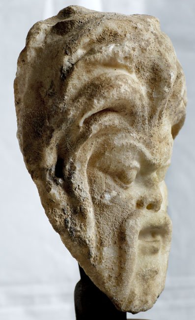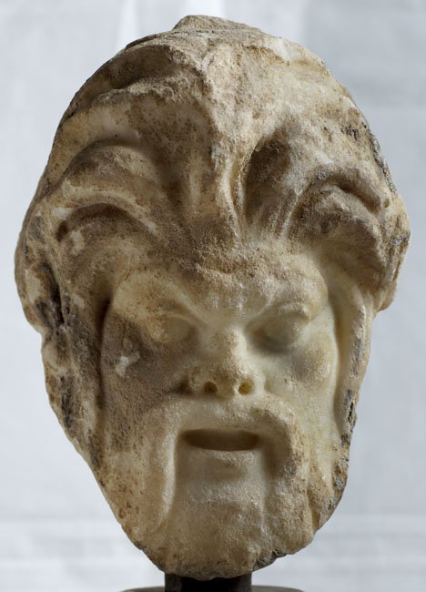 - Mythische Figur: Gesicht eines bärtigen Satyrs