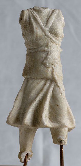 - Mythische Figur: jagende Diana in kurzem Chiton, auf dem Rücken Köcher.