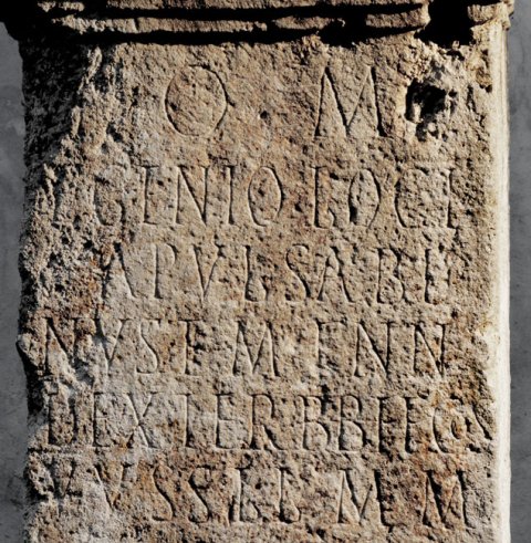 - I(ovi) O(ptimo) M(aximo) / et Genio loci / C(aius) Apul(eius) Sabi/nus et M(arcus) I[u]n(ius) / Dexter bb(ene)[f]f(iciarii) co(n)s(ularis) / vv(ota) ss(olverunt) ll(ibentes) mm(eritis) / Alb[ino] e[t] Max[imo] co(n)s(ulibus)