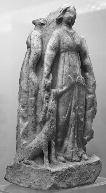 - Mythische Figur: dreileibige Hekate, Hund
