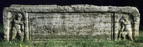 - M(anibus) D(is) / Mar(cus) Cocceius Iustus b(ene)f(iciarius) leg(ati) leg(ionis) I adi(utricis) stipend(iorum) / XXVI posuit merenti v(ivae) co(n)iunx votum piae et in arcam sep/elivit caram (?) Aureliam Iustinam uxore/m et Cocceia(m) Marcellam filiam vivus