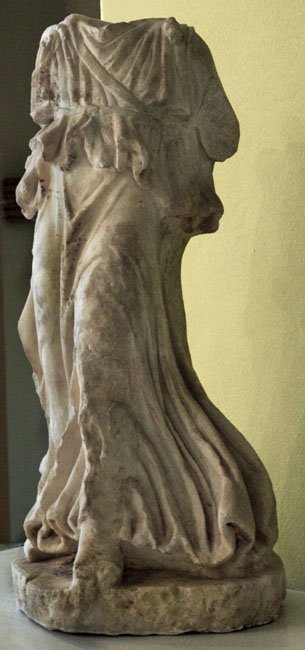 - Mythische Figur : bewegte Frauenfigur (Diana ?) im langen, hoch gegürteten Chiton und schräg über den Oberkörper gelegtem Band (für Köcher ?).