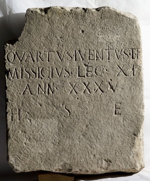 - Quartus Iu(v)entius T(iti) f(ilius) / missicius leg(ionis) XI / ann(orum) XXXV / h(ic) s(itus) e(st)