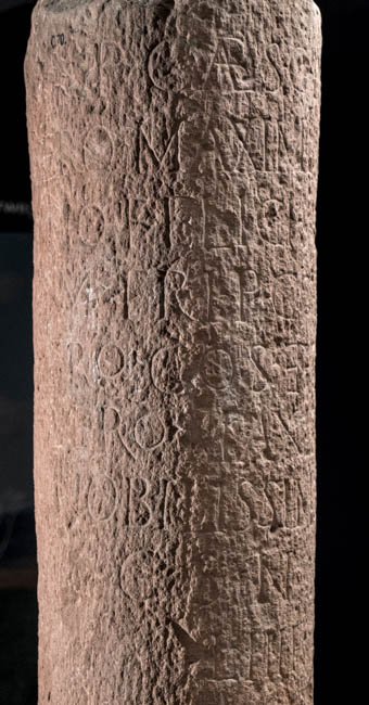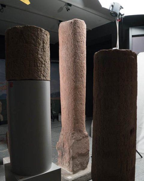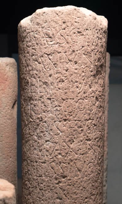 - I<m>p(eratori) Caes(ari) C(aio) Iulio / Vero Maximino / Pio Felici Aug(usto) / p(ontifici) m(aximo) tri(bunicia) p(otestate) co(n)s(uli) p(atri) p(atriae) / proco(n)s(uli) et G(aio) Iul(io) / Vero Maxi<m>o / nobilissimo Caes(ari) / c(ivitas) S(ueborum) N(icrensium) / l(eugas) IIII