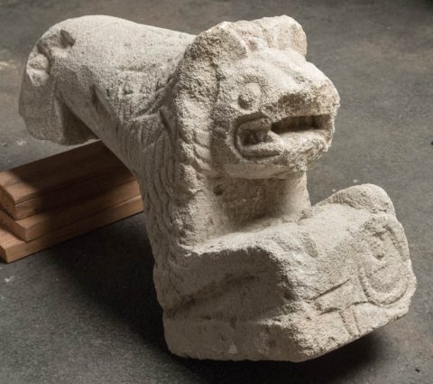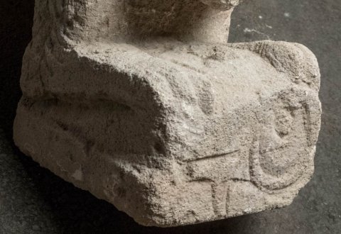 - Löwe über Widderkopf, auf der Basis vorn Ritzzeichnung