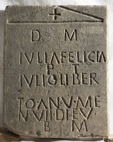 - D(is) M(anibus) / Iulia Felicia / p(osuit) t(itulum) / Iulio Liber/to an(norum) V me/n(sium) VII die(rum) V / b(ene) m(erenti)