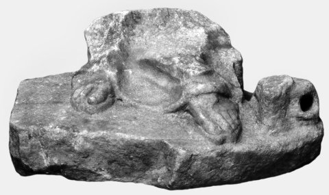- Mythische Figur: stehende bekleidete weibliche Figur, neben dem linken Fuß liegendes Gefäß mit durchgehender Bohrung. Nymphe, Teil eines Brunnens.