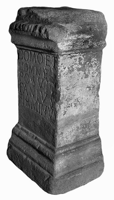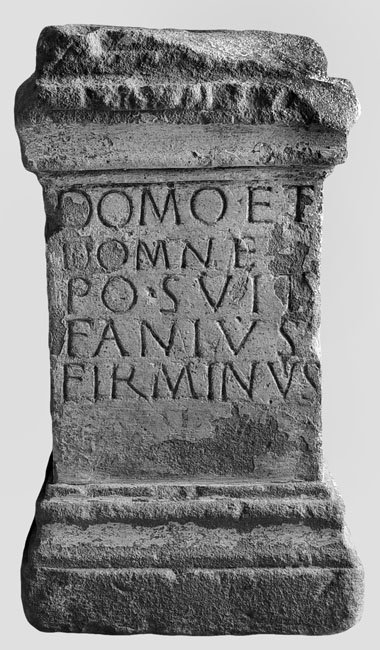 - Dom(in)o et / Domn(a)e / posuit / Fan(n)ius / Firminus / [C]assianu[s(?)]