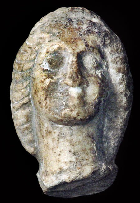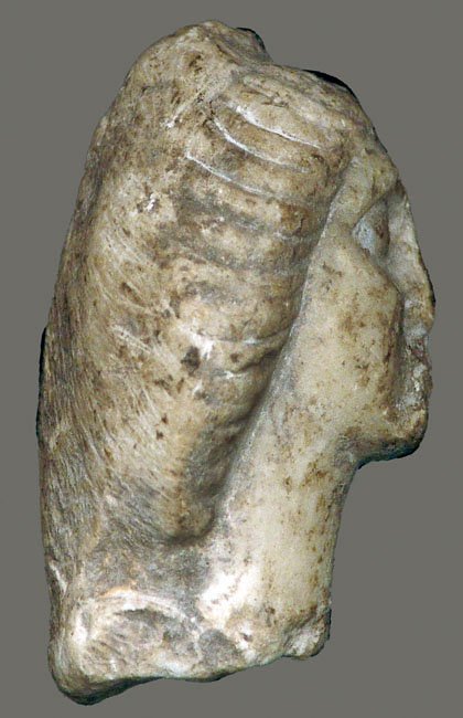 - Bruch durch den Halsansatz, bestoßen, versintert