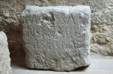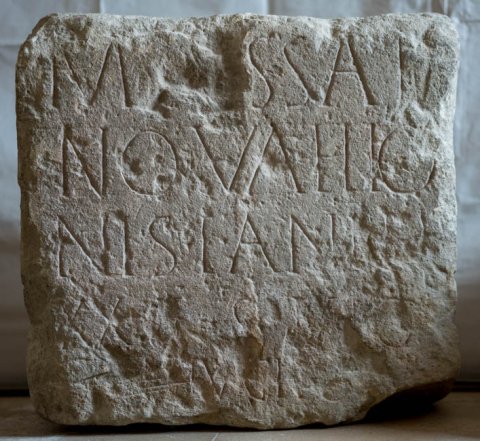 - ---]? / M[oi]ssai(?) / Novallio/nis f(ilia) ann(orum) L/XX [h(ic)] s(ita) e(st) [--]o / c[o]niugi o(ptimae) [b(ene) m(erenti)?]