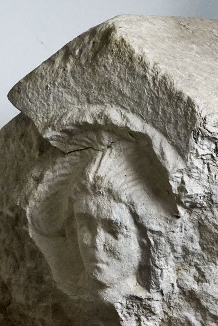 - Deckel in Form eines Giebeldaches, im Giebel Medaillon mit weiblichem Kopf (Gorgoneion ?).