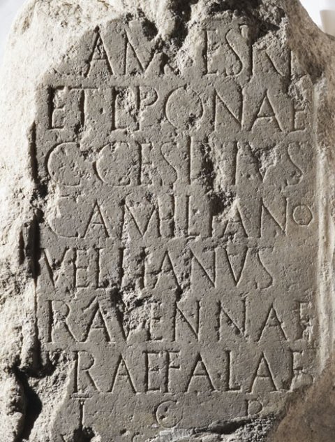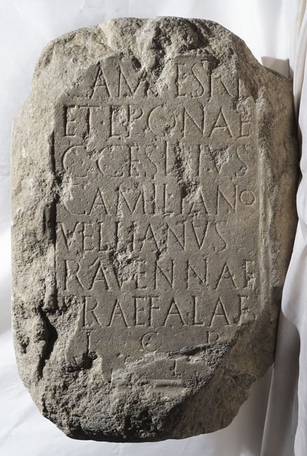 - Cam[p]estri(bus) / et Eponae / C(aius) Cesi[-]ius / Camiliano / Vellianus / Ravennae / praef(ectus) alae / I C(ivium) R(omanorum)