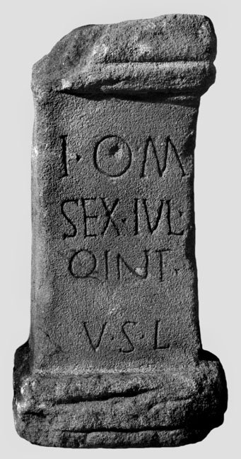 - I(ovi) o(ptimo) m(aximo) / Sex(tus) Iul(ius) / Q(u)int(us) / v(otum) s(olvit) l(ibens)